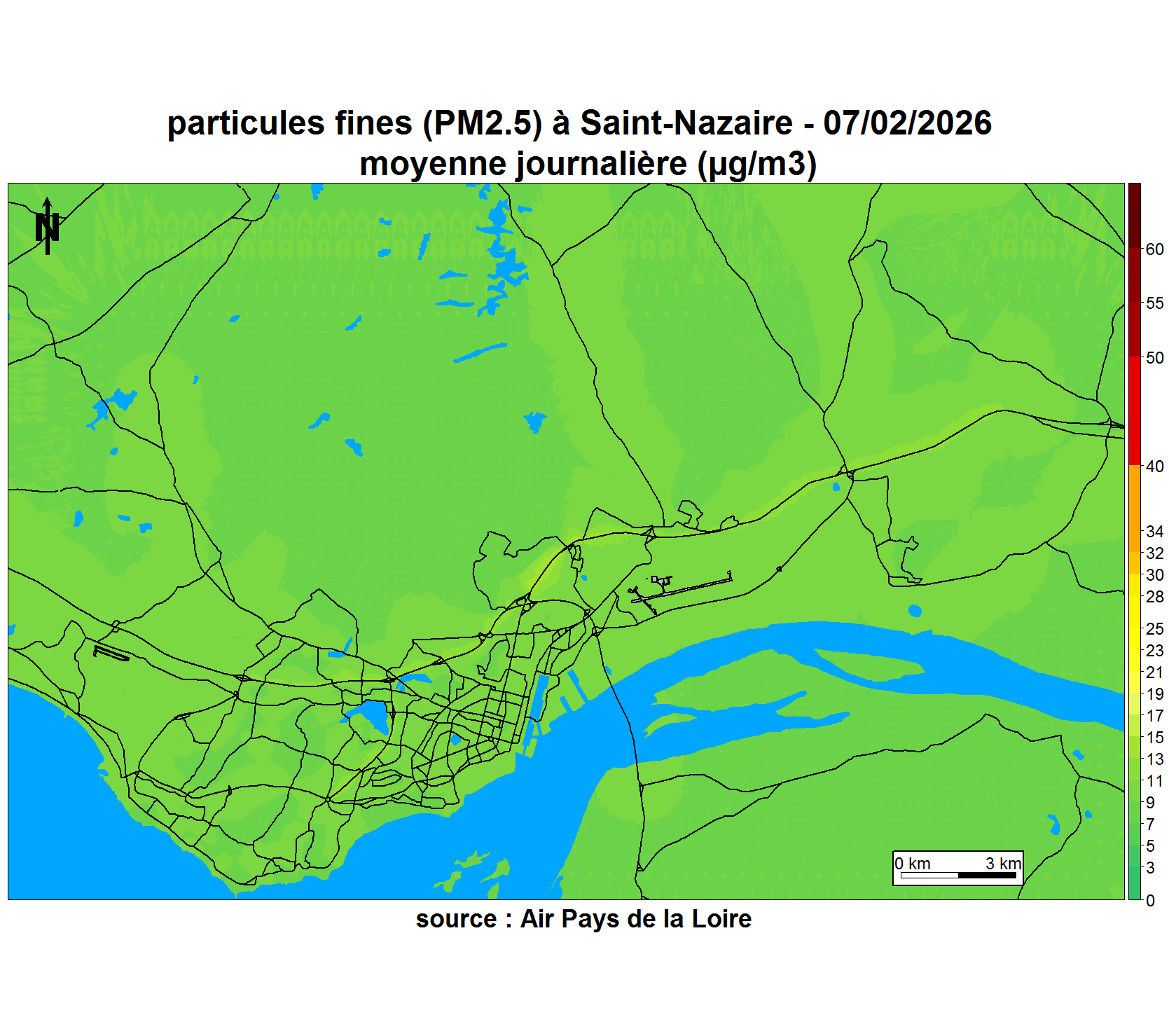 - BURGEAP n’a pas examiné les mesures de la station BLUM qui capte les Particules PM10 et PM2.5 et n’a fait que regarder les mesures de polluants ordinaires (NO2, SO2) sur un capteur banal de Air Pays de la Loire, le dit capteur étant au bord du cône du panache