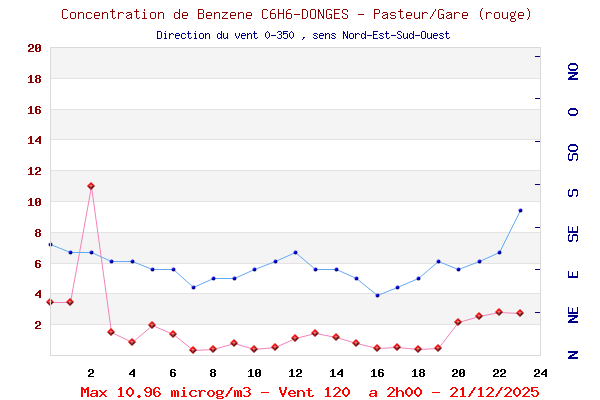 Hier, à la Place de la Gare, quels Vents, Combien de Benzène par direction ?