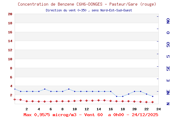 Malheureusement, le nombre de mesures et la durée des mesures (à minima 8 semaines par an , 14% ?! )  apparaissent comme bien trop petits pour avoir des informations représentatives des expositions subies par les habitants de la CARENE en fonction des différents vents dominants.