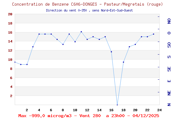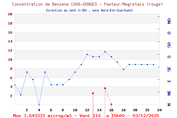 Hier, à la Mégretais, quels Vents, Combien de Benzène par direction ?