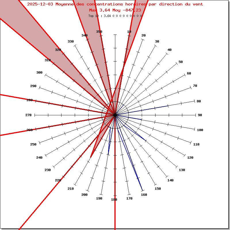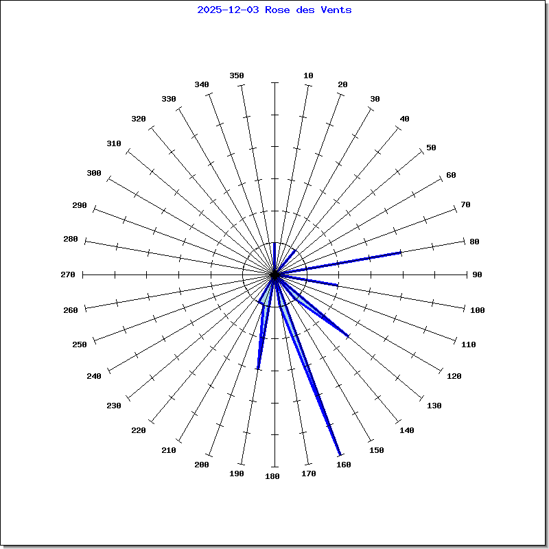 En BLEU, l'orientation du vent sur 360°