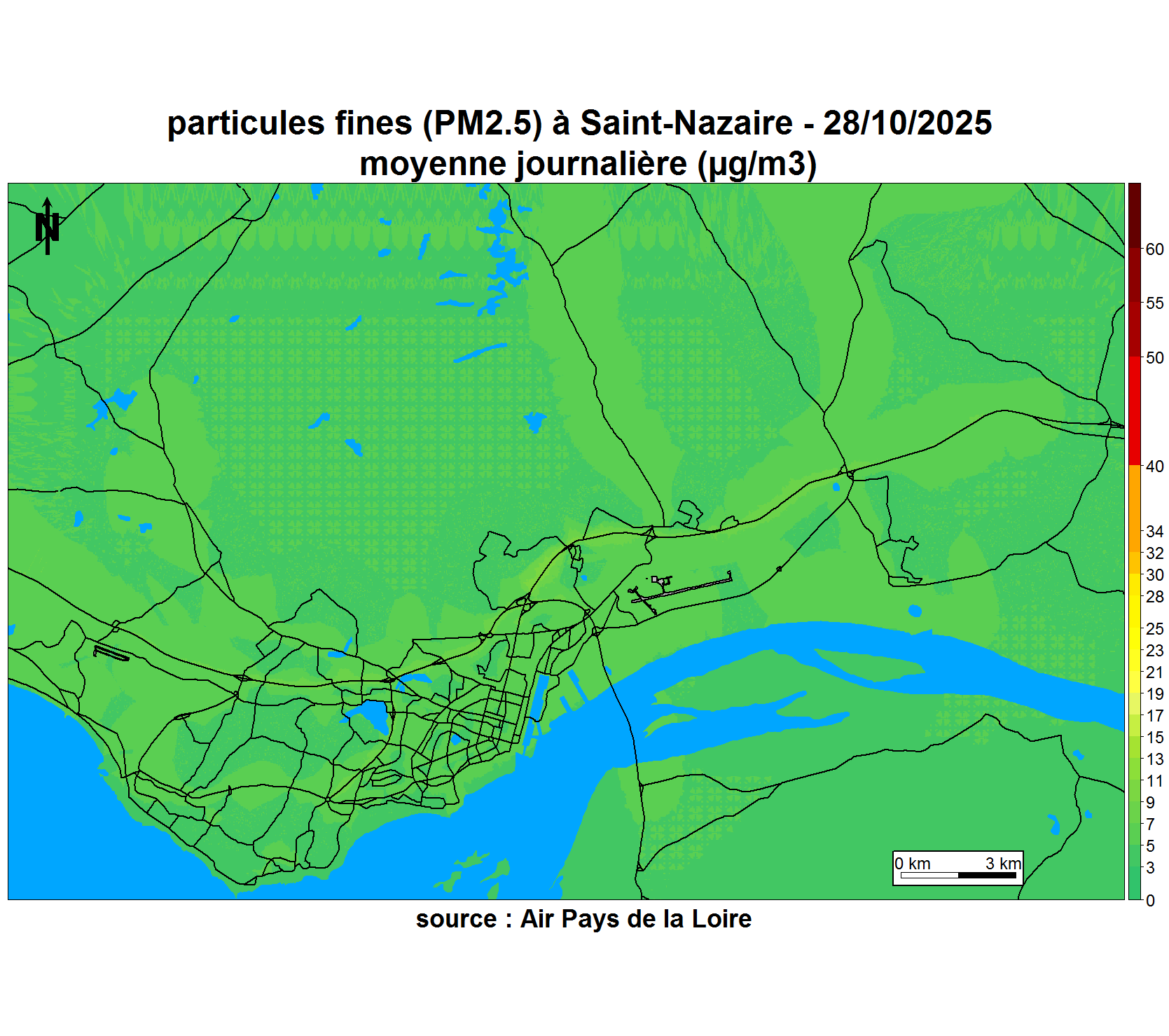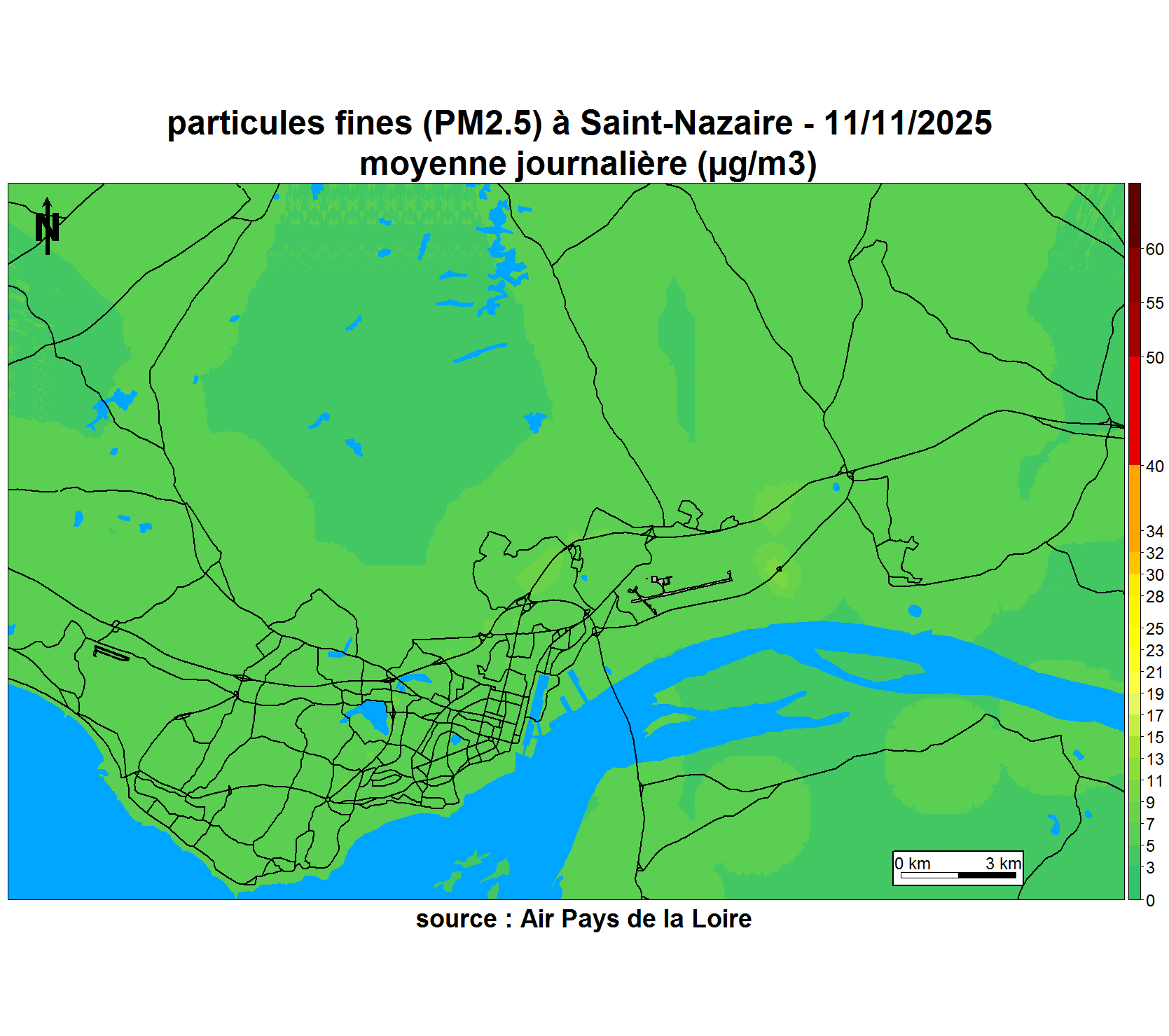 On notera qu’il n’y a aucun capteur de pollution de l’air, sur la Baule, que ce soit les classiques NO2, NOx, voire PM10 et aucun capteur de particules fines PM2.5 qui pénètrent profondément dans les poumons et les vaisseaux sanguins.