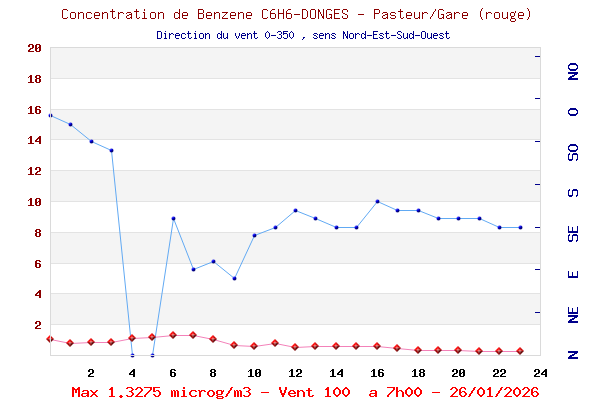 Hier, à la Place de la Gare, quels Vents, Combien de Benzène par direction ?