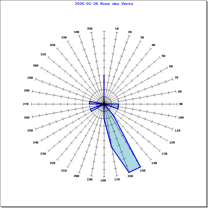 En BLEU, l'orientation du vent sur 360°