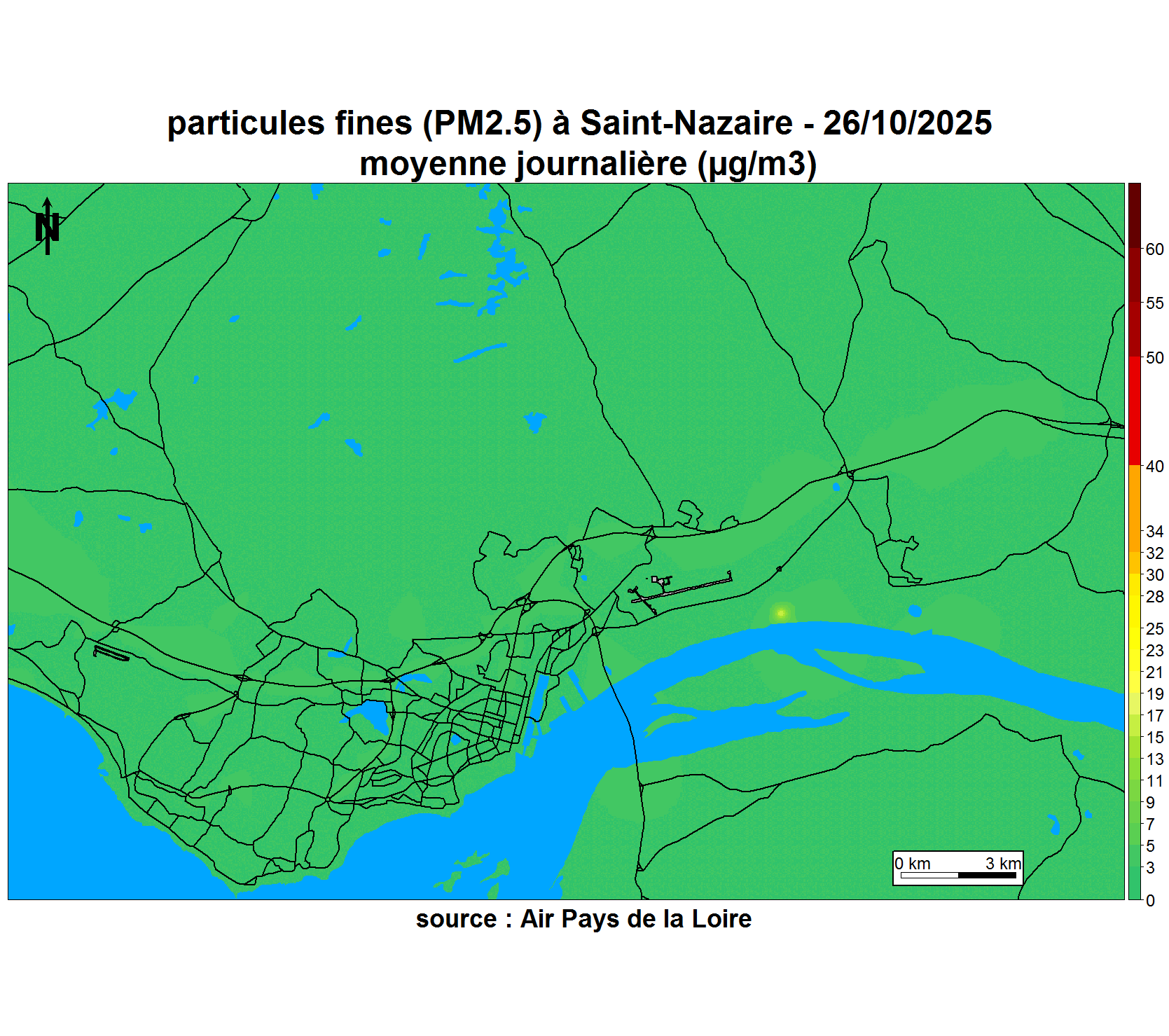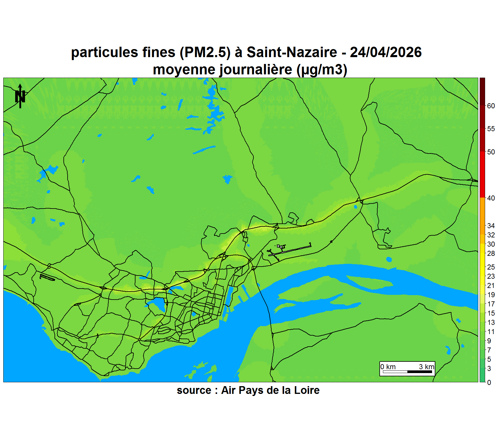 On notera qu’il n’y a aucun capteur de pollution de l’air, sur la Baule, que ce soit les classiques NO2, NOx, voire PM10 et aucun capteur de particules fines PM2.5 qui pénètrent profondément dans les poumons et les vaisseaux sanguins.