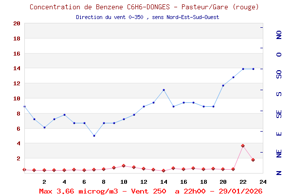 sur les PM10 , on peut constater une augmentation de quelques µg mais pas forcément significative, d’autant que la station est sur le côté du « cône de fumée »
