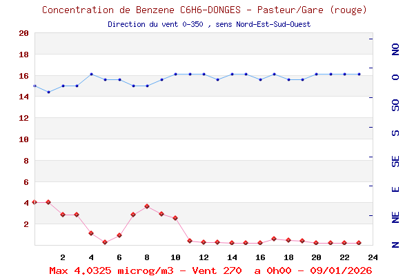 Hier, à la Place de la Gare, quels Vents, Combien de Benzène par direction ?