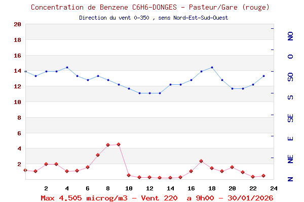 Hier, à la Place de la Gare, quels Vents, Combien de Benzène par direction ?