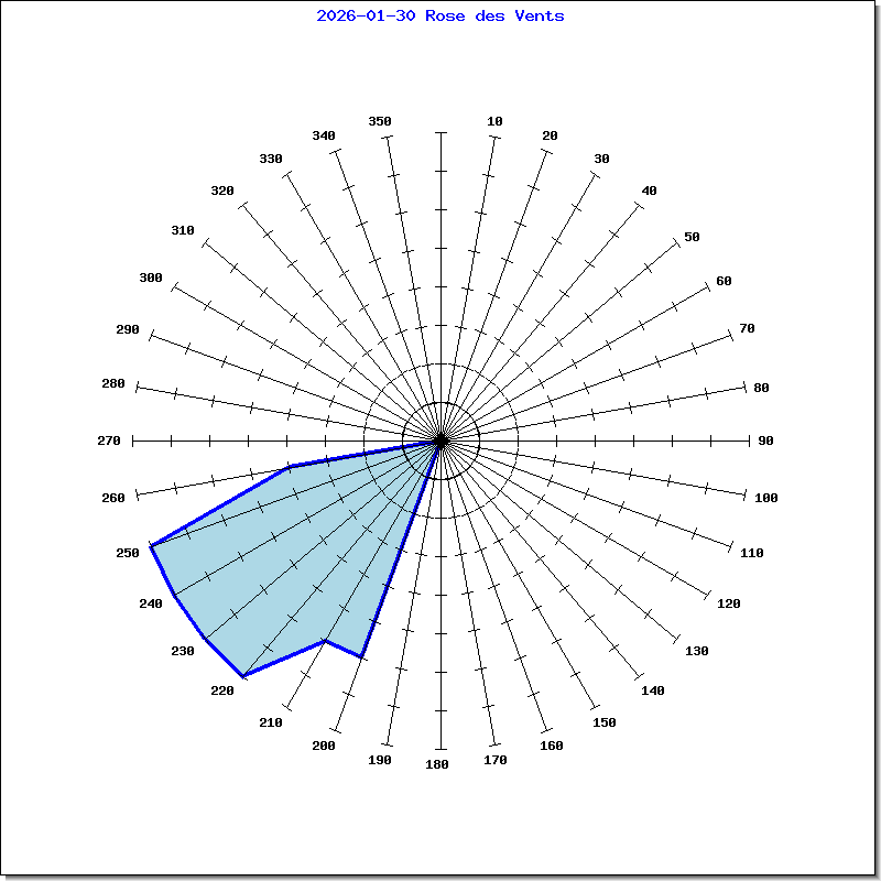 En BLEU, l'orientation du vent sur 360°
